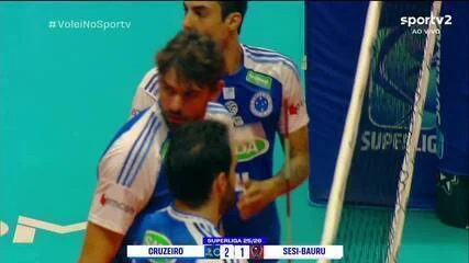 Nos momentos decisivos, o Cruzeiro abriu quatro pontos e conseguiu se manter à frente. O Sesi-Bauru chegou a diminuir a diferença, mas não conseguiu igualar o placar, que foi fechado em 25 a 23 para a Raposa, com Douglas Souza finalizando um ataque pelo meio de rede.
