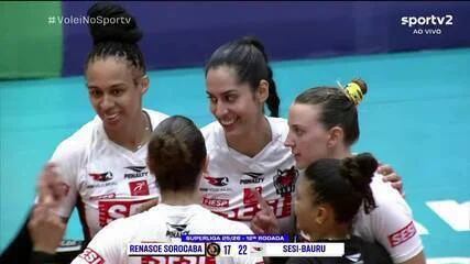 No segundo set, o domínio foi ampliado. Kasiely marcou pontos importantes nos contra-ataques e Léia destacou-se na defesa, permitindo transições rápidas que desequilibraram o adversário. O Renasce acumulou erros ofensivos enquanto o bloqueio do Sesi-Bauru, especialmente com Mayany, funcionou de forma constante. Sem dar chances para a reação do Sorocaba, a equipe visitante venceu com ampla margem, 25 a 14.