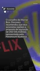 Segundo o conselho da Warner, a proposta da Paramount envolveria alto endividamento, geraria incertezas sobre a conclusão da transação e ofereceria pouca proteção aos acionistas. Por isso, a recomendação é clara: rejeitar a investida da Paramount e seguir adiante com os planos de fusão com a Netflix.